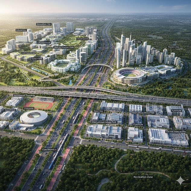 Hyderabad Future City is envisioned across nearly 30,000 acres, divided into multiple smart zones such as AI City, Health Zone, Education Zone, Industrial & Green Energy Corridors, and the upcoming World Trade Center (WTC) Tower.